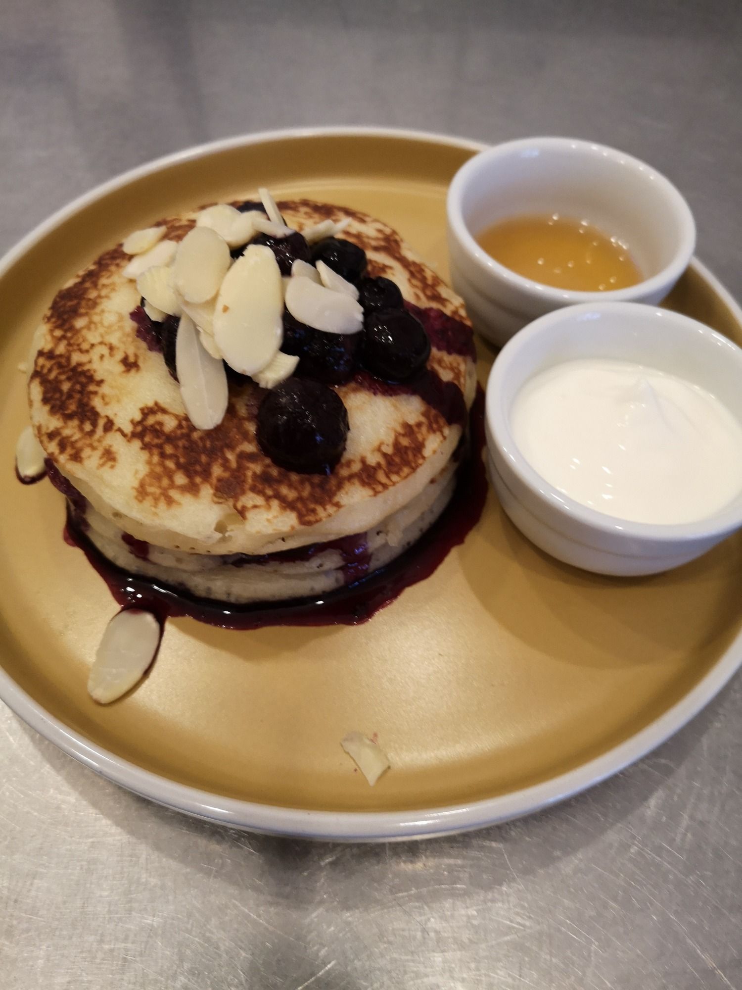 Served with Greek yogurt, almond flakes and honey or flavoured syrups